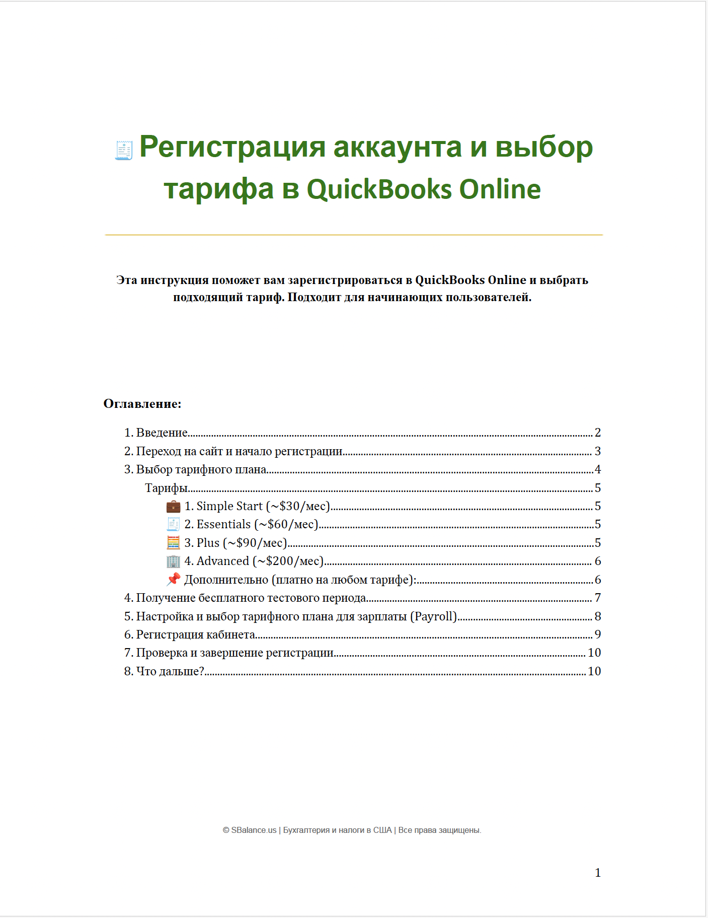 📘 Подробная инструкция по регистрации аккаунта и выбору подходящего тарифа в QuickBooks Online.